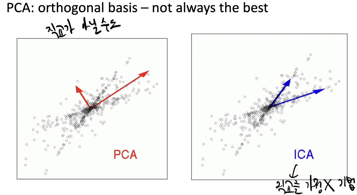 이럴때는 ICA (직교를 가정하지 않는 방법)를 사용하면 된다고 한다.