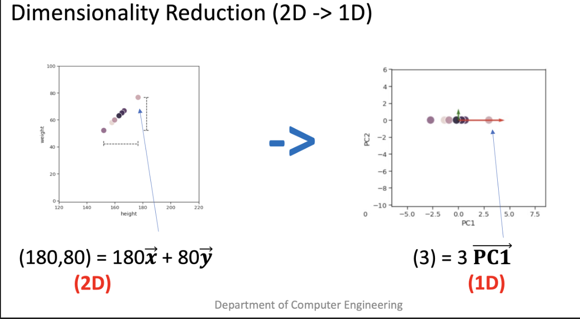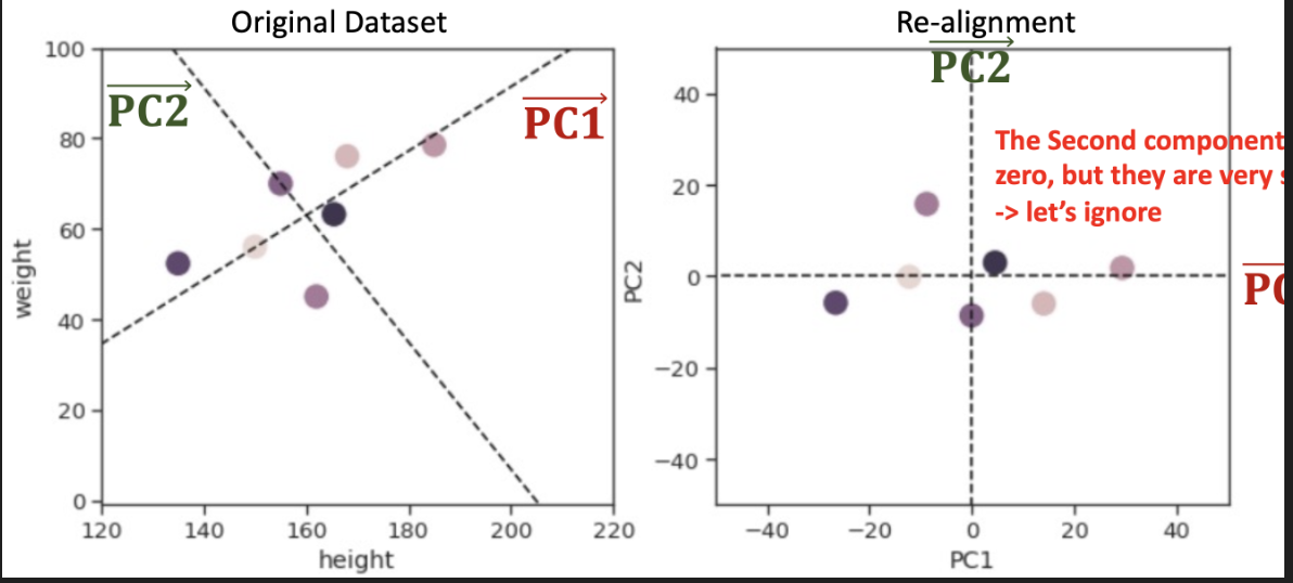 완벽하게 새로운 축에 정렬 되어 있지 않은 경우도 조금의 차이는 무시해서 차원을 줄이자는 아이디어.
