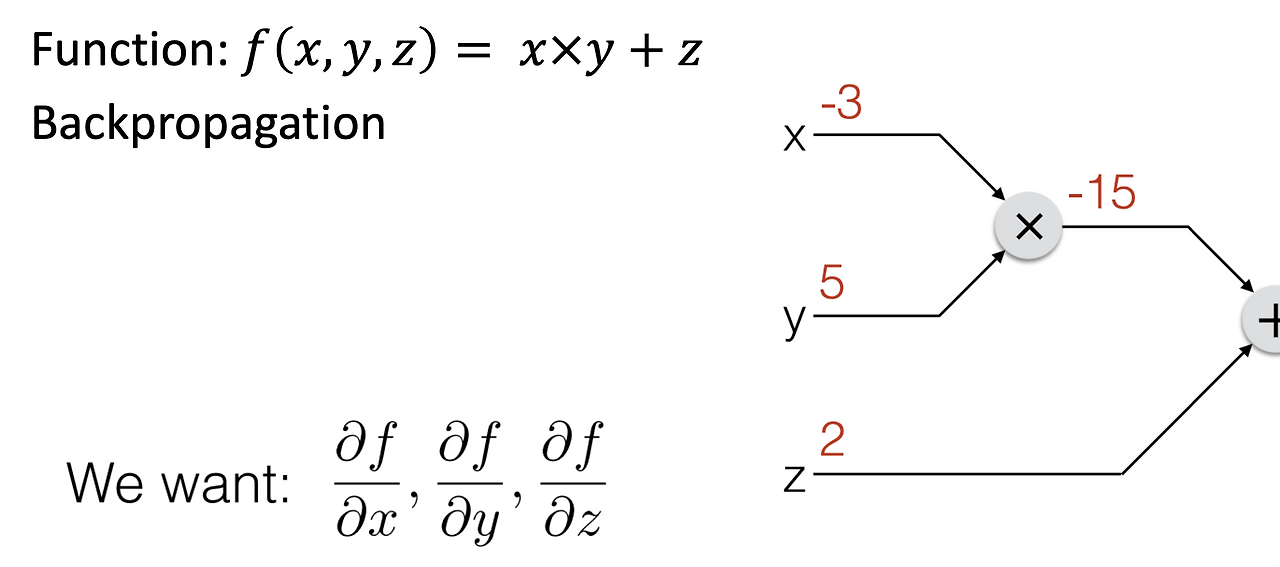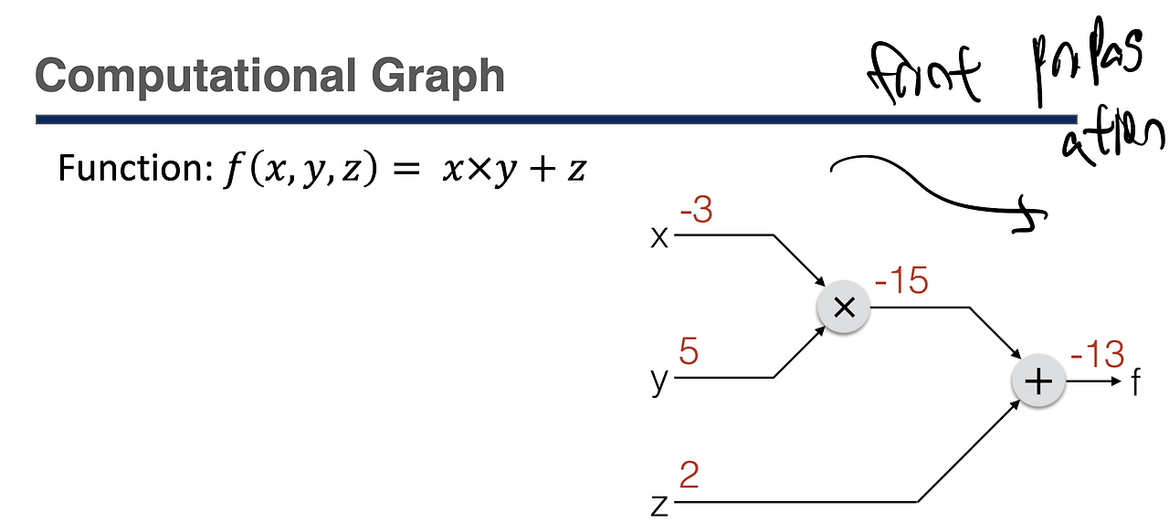 -3, 5, 2가 주어졌을 때 -15 + 2 해서 -13을 구한게 front propagation이다.