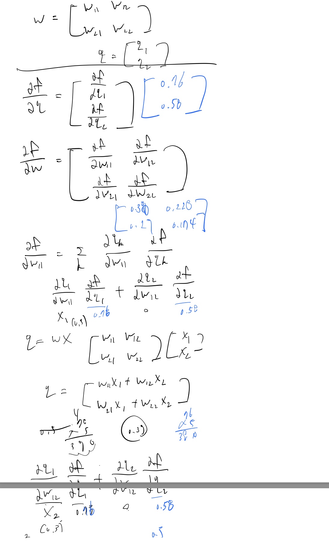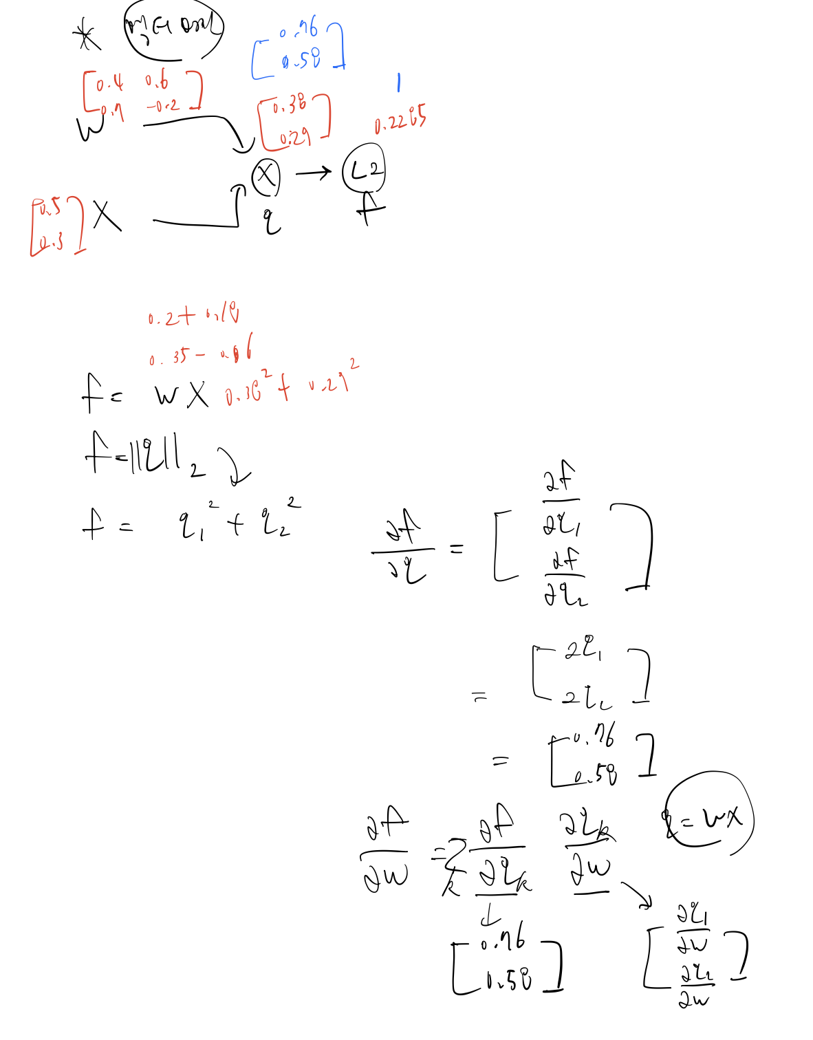 f를 W에 대해 미분한 값, x에 대해 미분한 값.