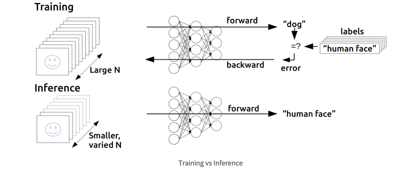 쉽게 말해 예측하는 작업! 당연히 학습된 모델이기 때문에 추론 과정에서는 순방향 전파만 일어난다.