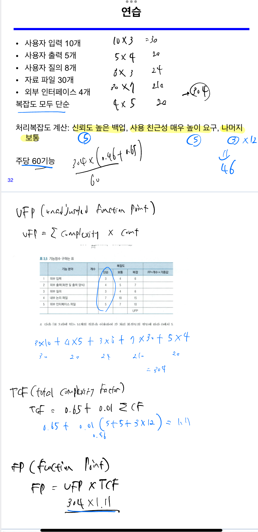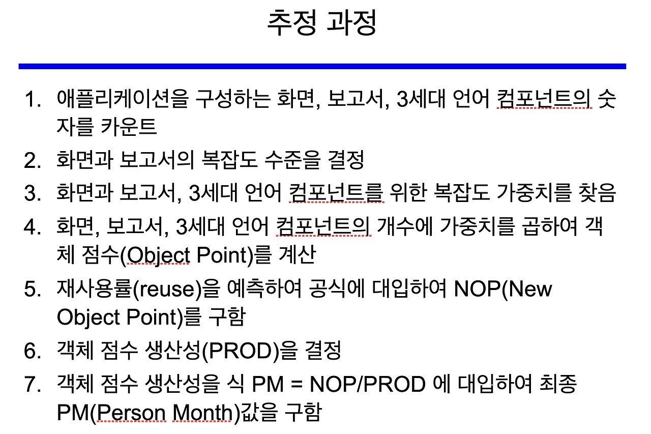 1 단계: 프로토타입 만드는 단계 화면이나 출력 등 사용자 인터페이스, 3 세대 언어 컴포넌트 개수를 세어 응용 점수(application points)를 계산