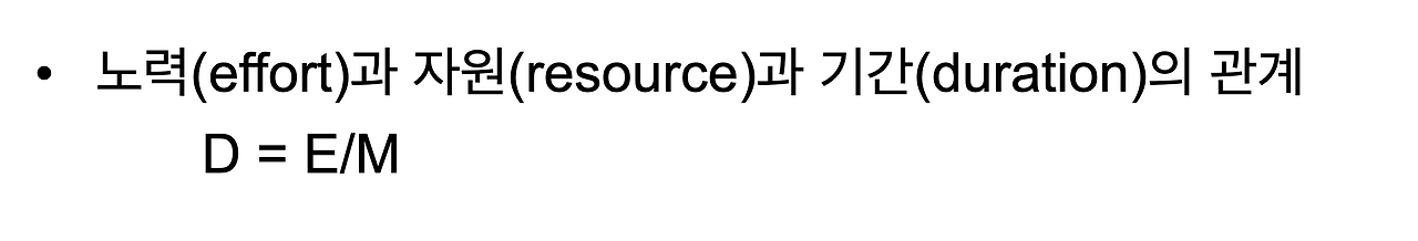그리고 E는 effort로 프로젝트를 수행하기 위해 필요한 총 작업량이다.