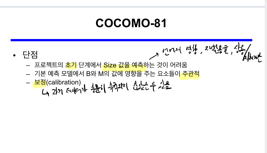 Size는 개발될 소프트웨어의 원시코드 라인수나 기능 점수.