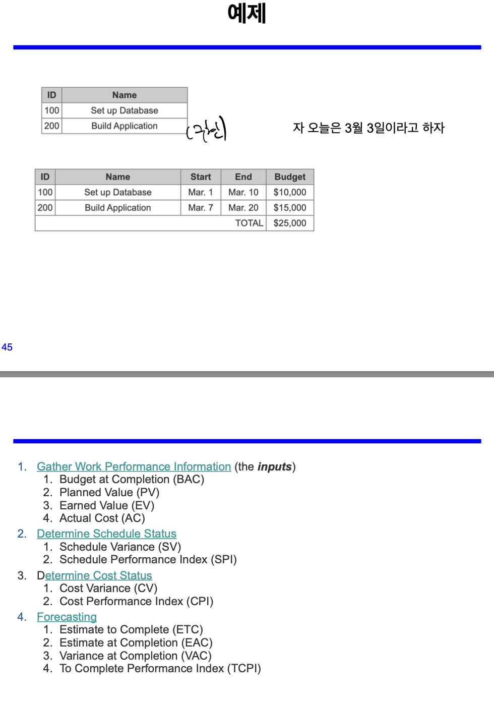 미래 상황을 예측한다 - ETC = (BAC - EV) / CPI, EAC = AC + (BAC - EV), VAC = EV - AC, TCPI = (BAC - EV) / (BAC - AC) OR (BAC - EV) / (EAC - AC)