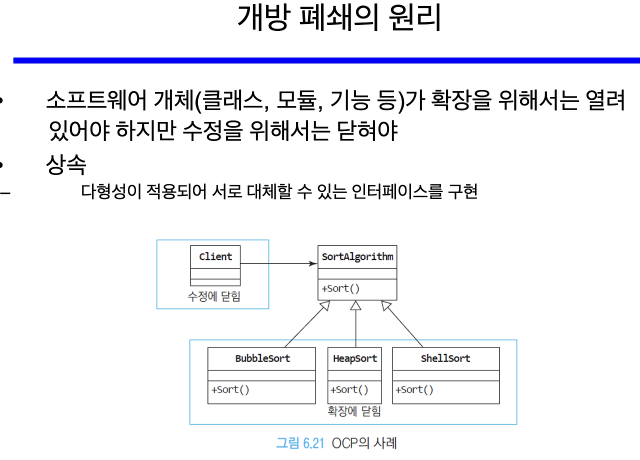 - 소프트웨어 개체는 확장에는 열려 있어야 하고 수정에는 닫혀 있어야 한다.