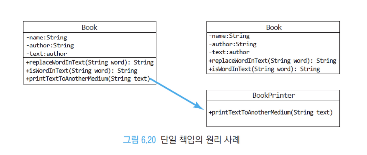예시에서는 Book에 print가 있는데 이건 SRP에 위배되니, BookPrinter라는 클래스를 만들어서 분리해준다.