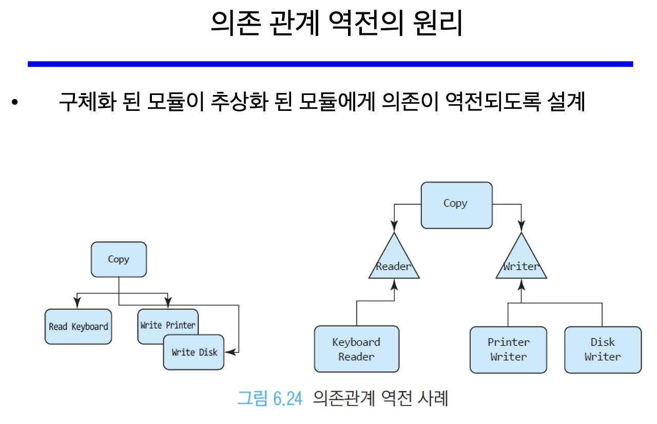예시처럼 Copy가 구체적인것에 의존하면 keyboard, printer, disk 내부가 바뀌거나 다른 device로 바꿀때 같이 수정해야 한다.