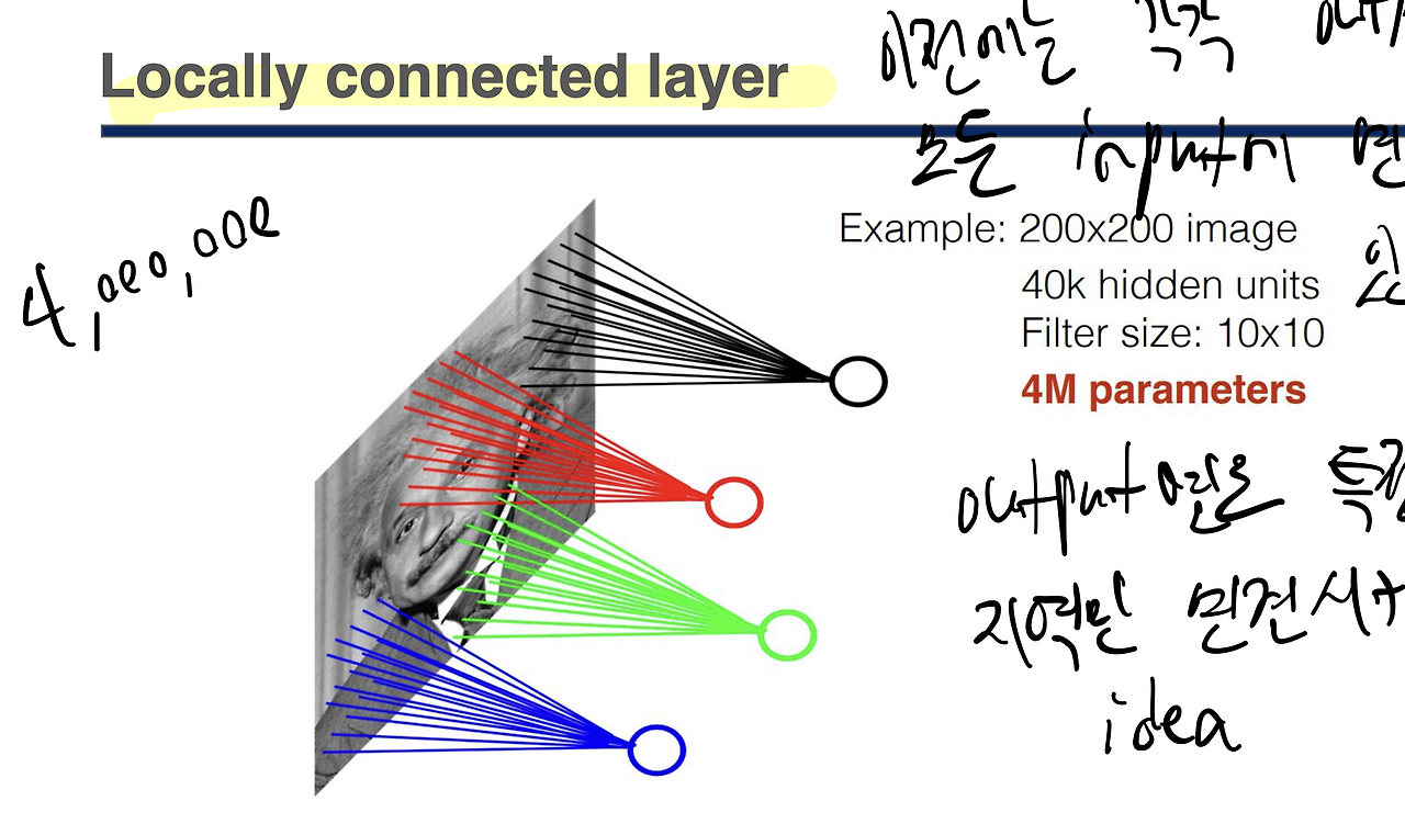 이를 개선하기 위해 Convolutional Layer가 등장했는데, 그전에 Locally Connected Layer를 알아보자