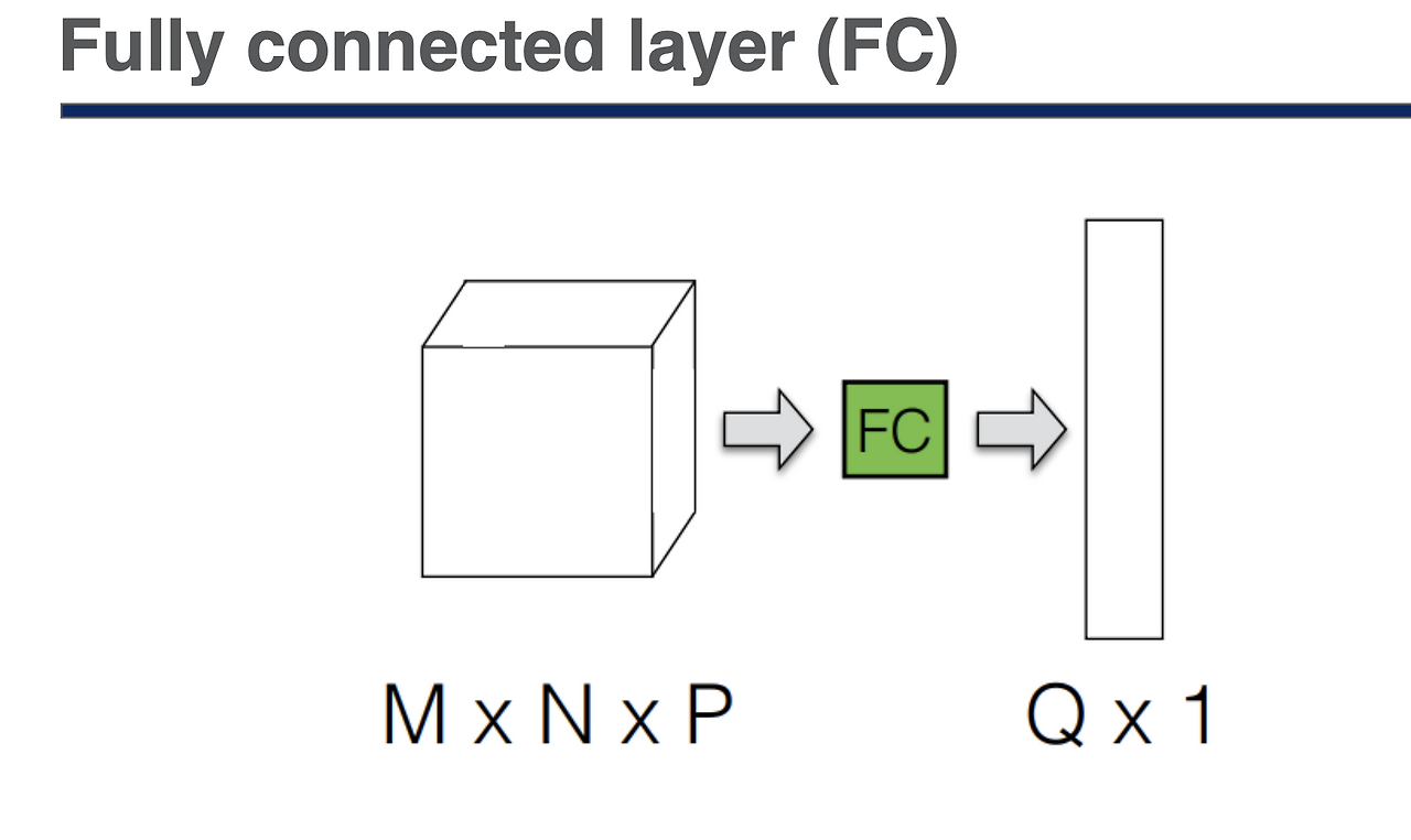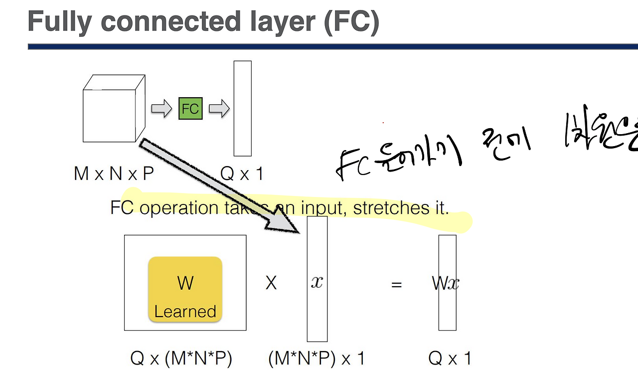 Fully Connected Layer에 들어가기 전 input값들은 1차원으로 변환하는 작업을 거친다.