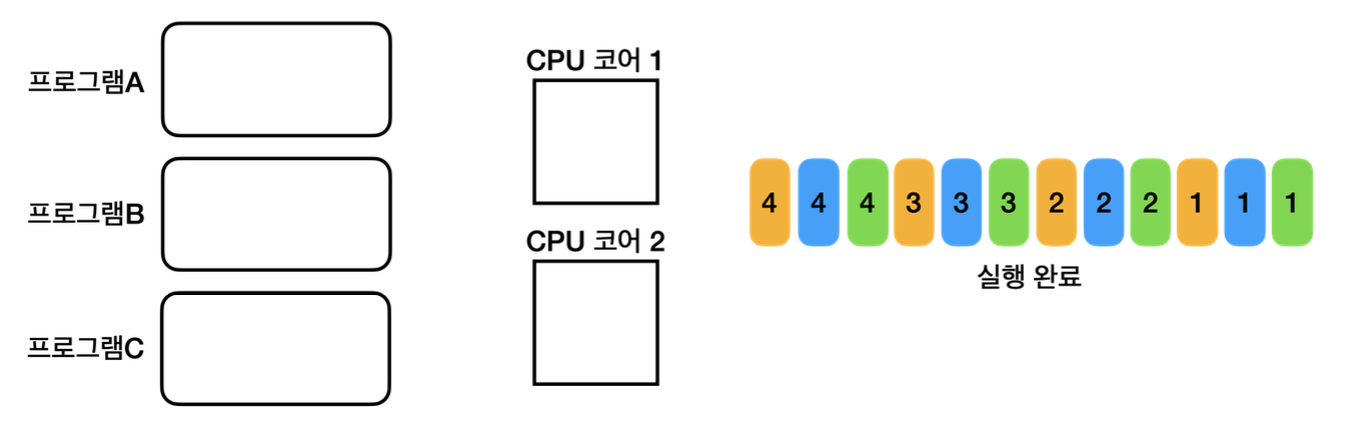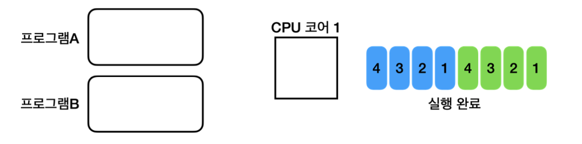 (현대 CPU는 1초에 수십억번의 연산이 가능하기 때문에 우리는 이렇게 번갈아 가며 수행하는 것을 느끼지 못한다)