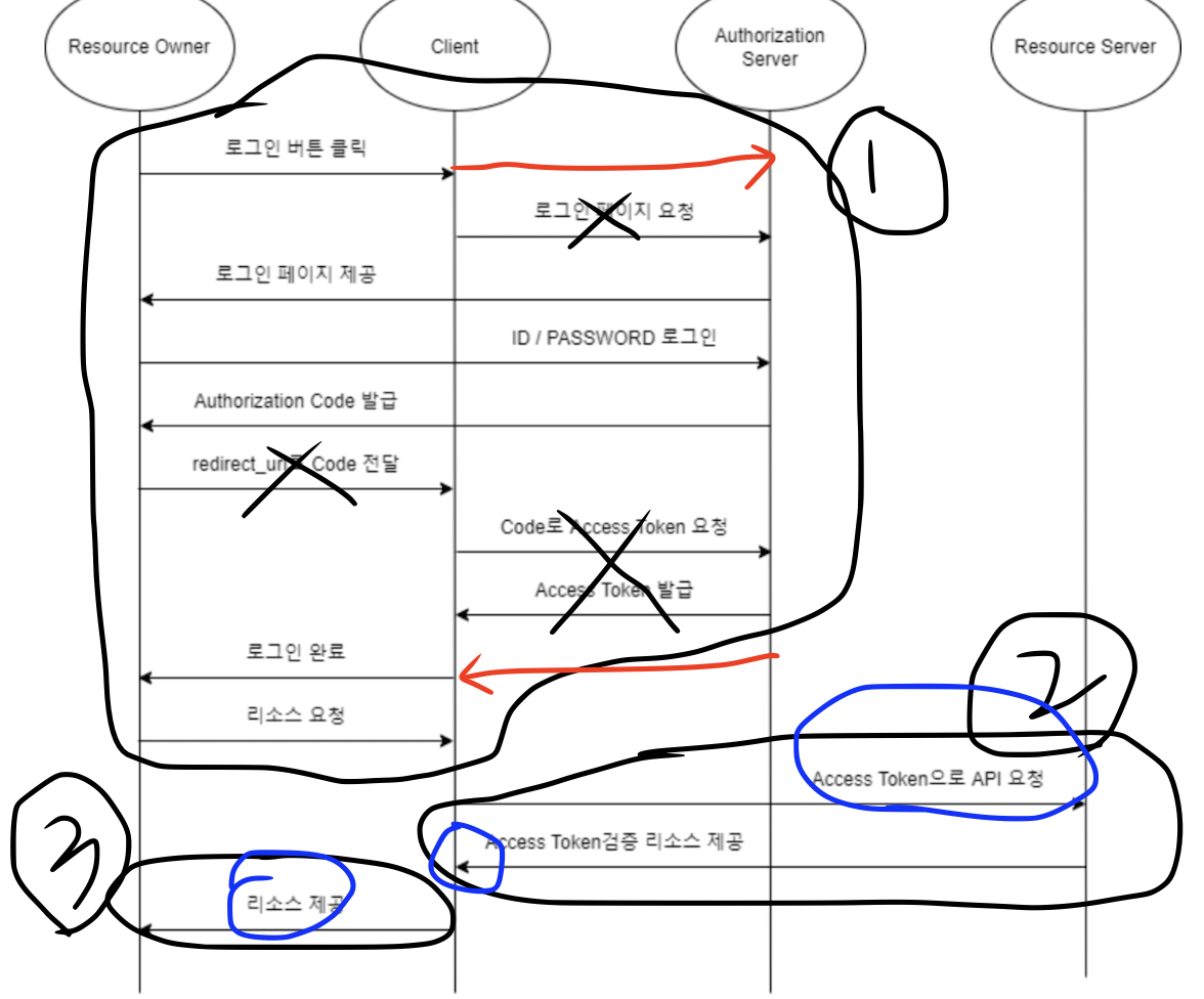 Spring security에서 모든걸 제공해 주기 때문에, 동그라미 친 부분만 개발하면 된다.