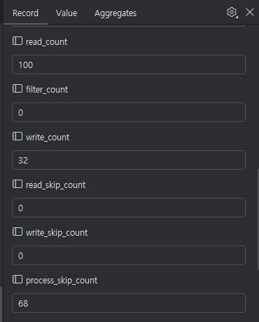 batch step에서는 68개의 레코드 실패 기록이 남아있었는데