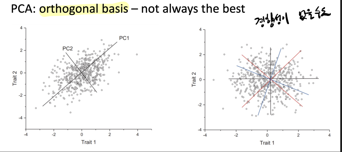 이럴때는 ICA (직교를 가정하지 않는 방법)를 사용하면 된다고 한다.