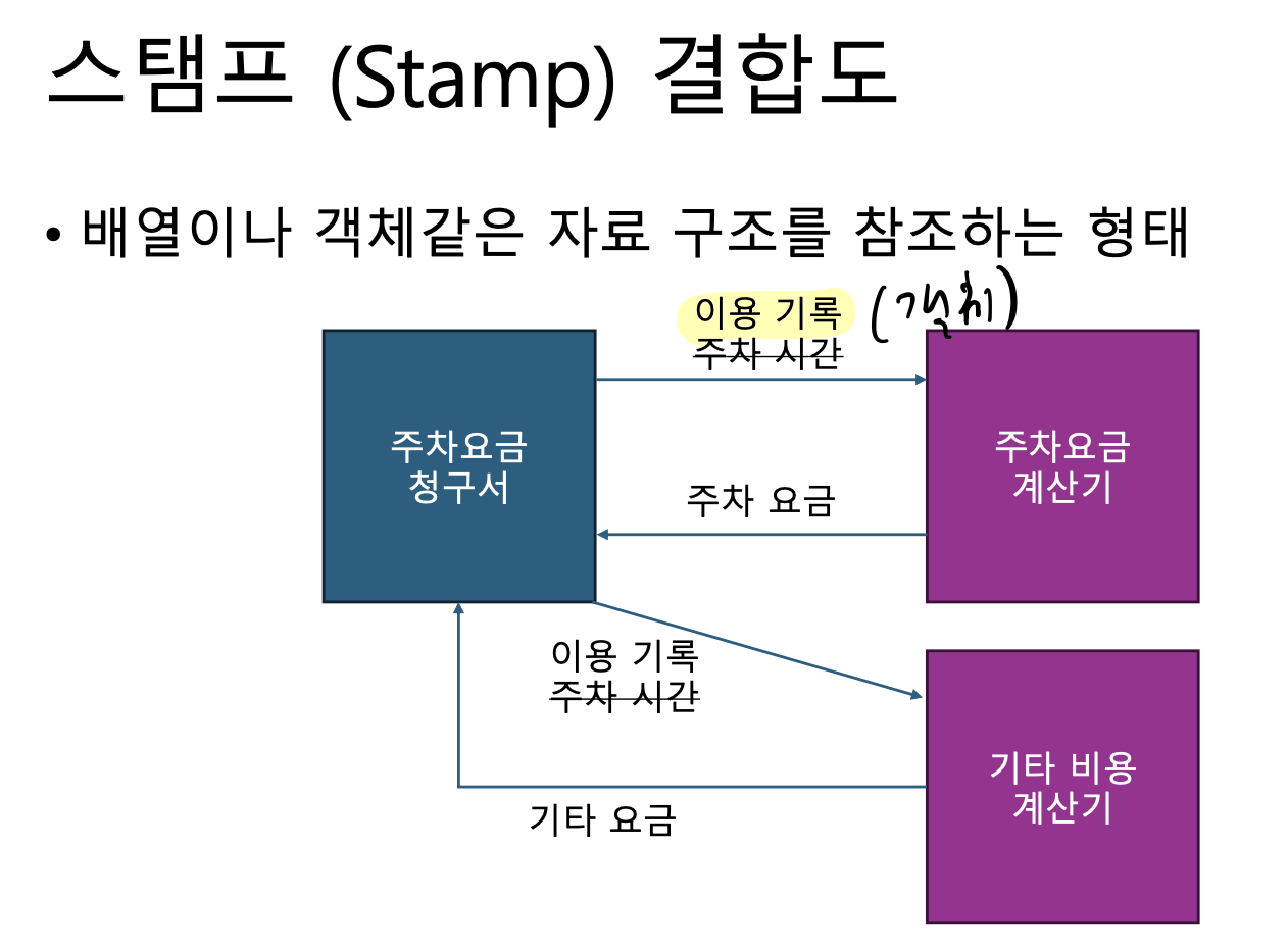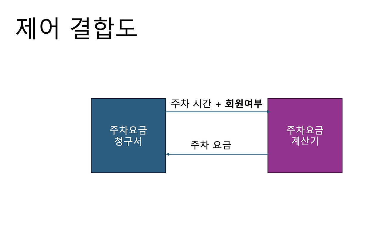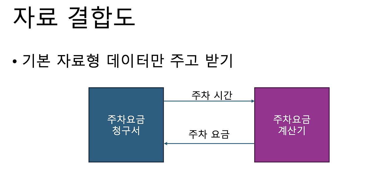 // 메서드안에서 또 다른 메서드를 호출해 의존도가 있긴 하지만, 메서드에 단순 파라미터 데이터를 보내는 형태