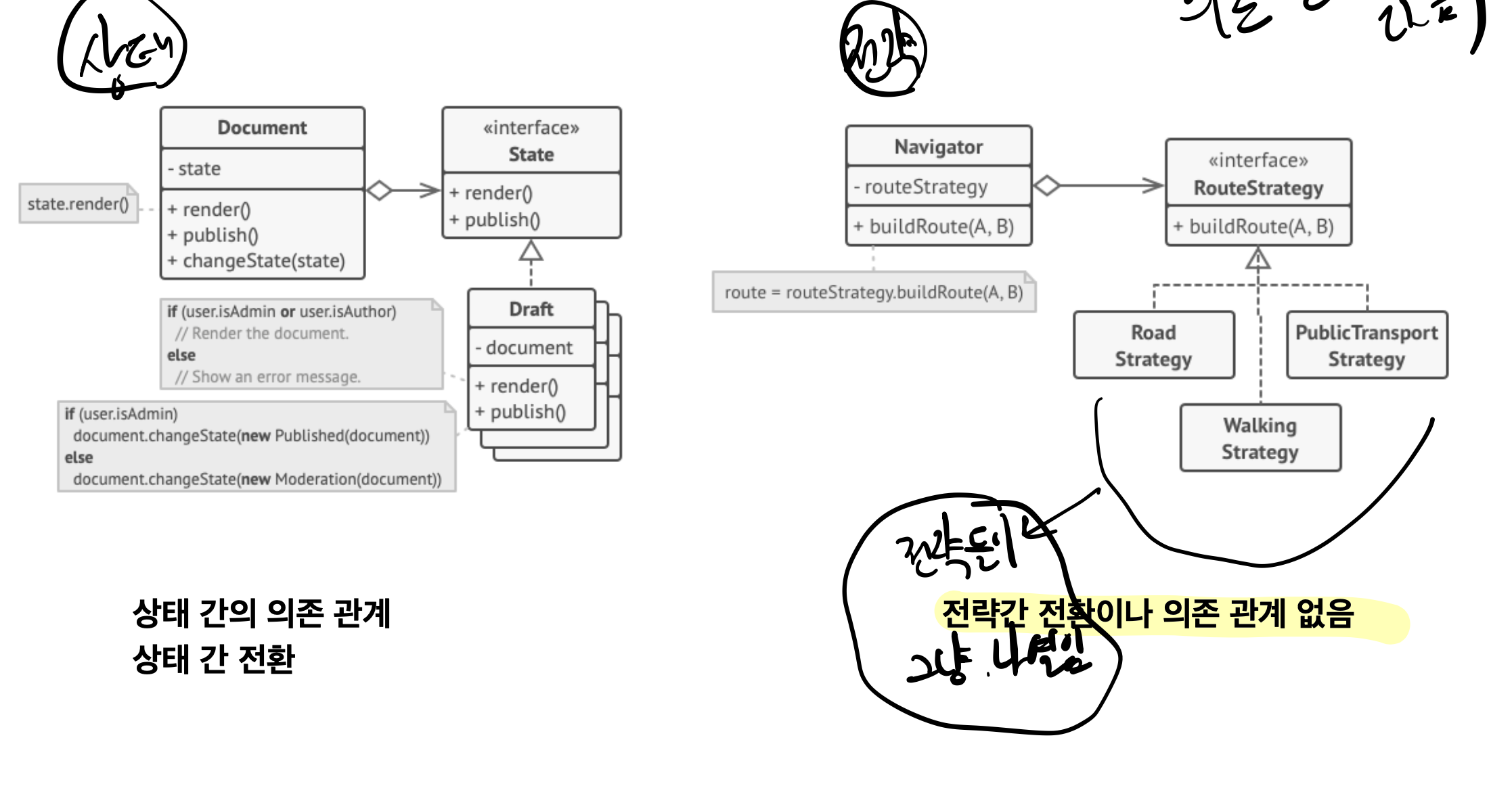 상태 패턴은 스테이트 머신끼리 의존관계가 존재한다.