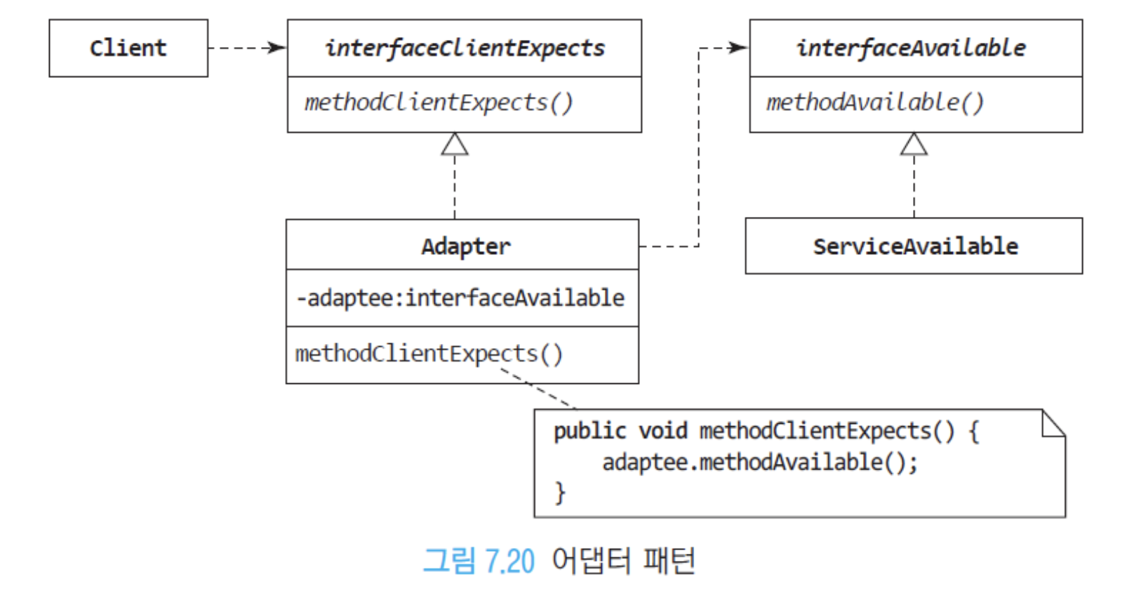 사용 가능한 서비스의 인터페이스를 클라이언트가 예상하는 인터페이스에 맞게 조정