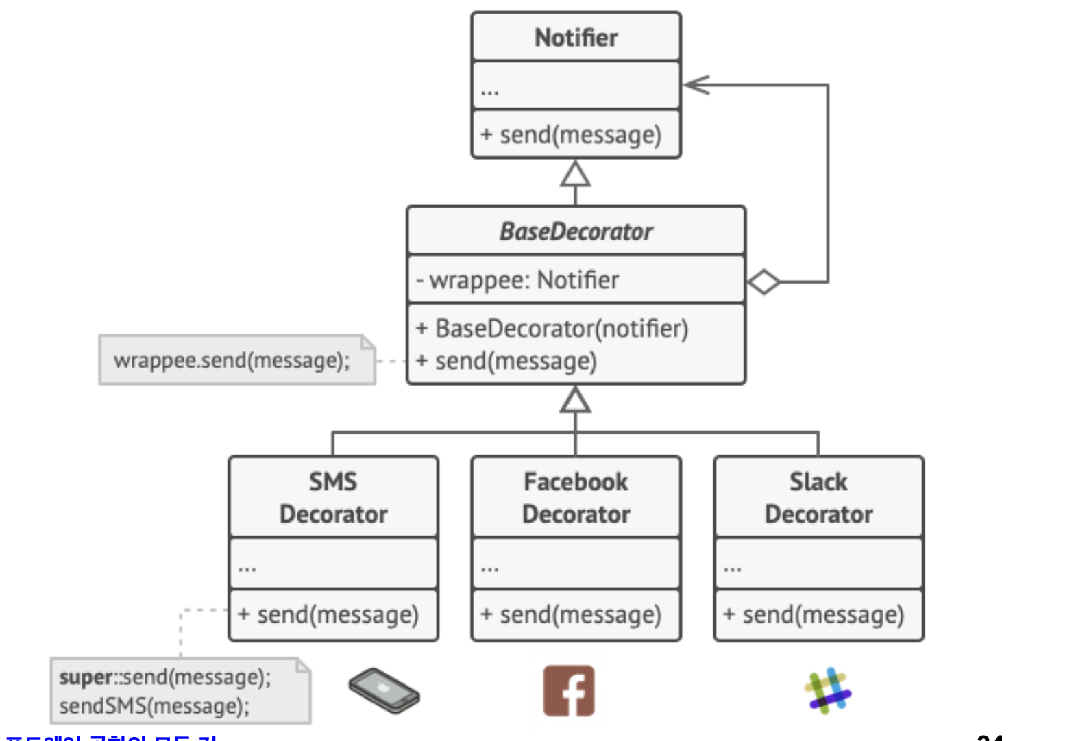 - 이를 해결하기 위해 만들어진게 데코레이터 패턴