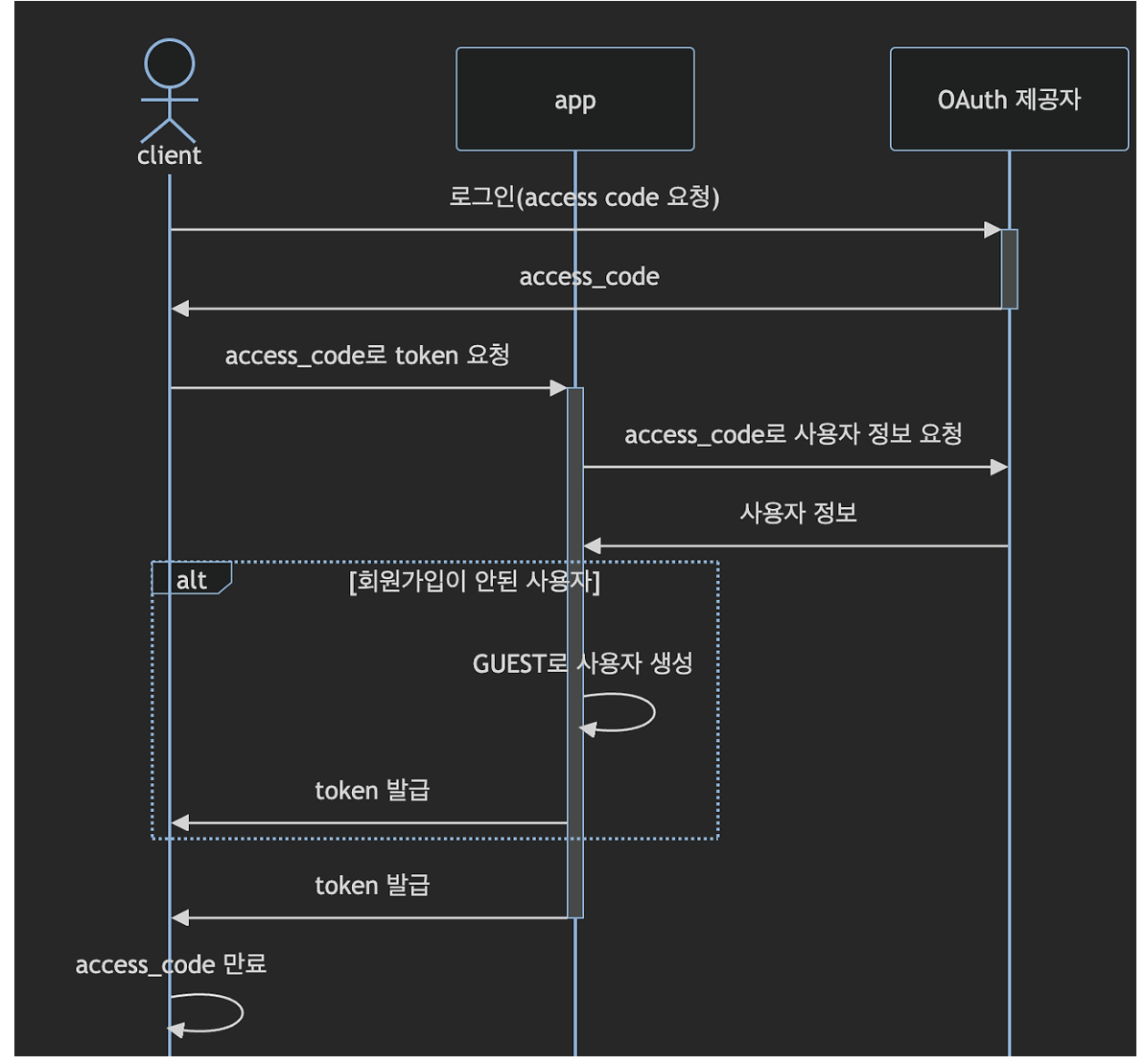 - (google의) access token으로 사용자 정보를 받아오는 서비스, get or save : OAuth Client (직접 구현)